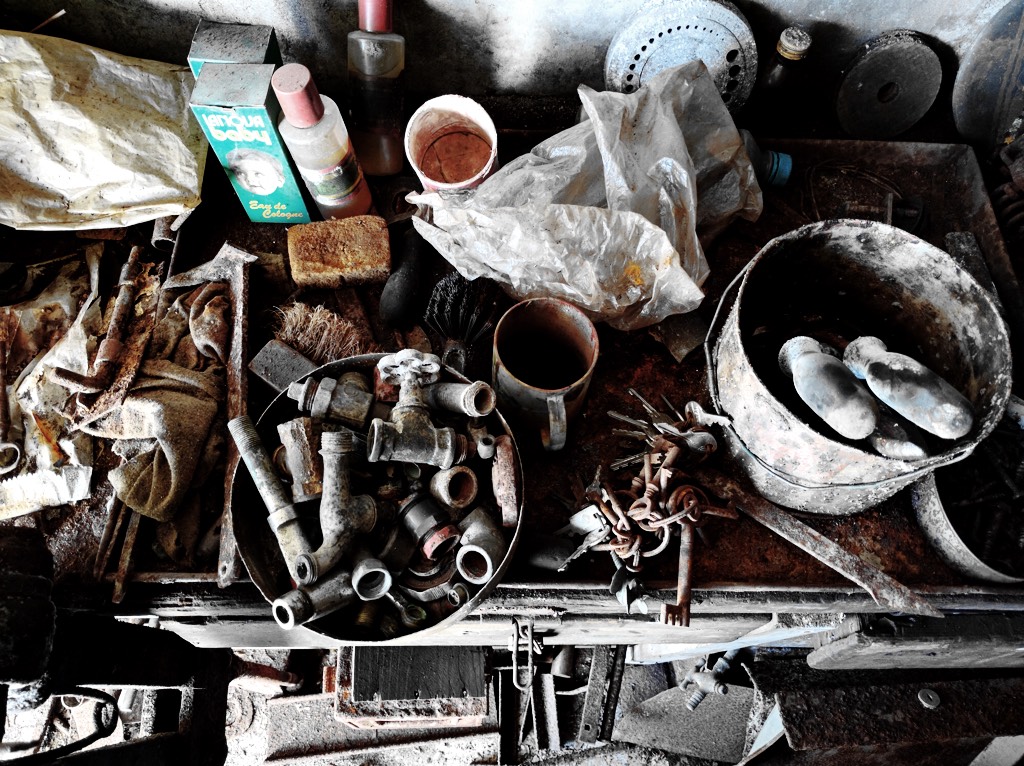 Rusty metal hammer and chain